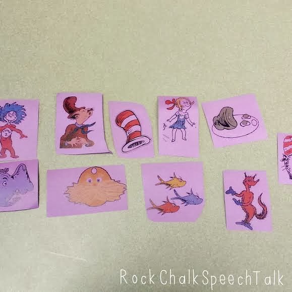 Last November, I attempted a DIY Hedbanz game with different types of dinosaurs to describe. I used it with the afternoon prek kids in each classroom for my small group rotation, and they loved it. They needed a bit of prompting to figure out how to describe each dinosaur, but in general, it went pretty well. So, I decided to try it out again this week with Dr. Seuss characters!