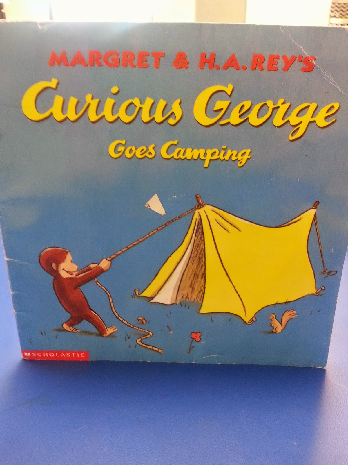 We also read the book, Curious George Goes Camping (yard sale find for 25 cents! hey-o! But you can purchase here on Amazon for $2.50 if you don’t have it!) We answered questions about the story as we went along, and I discussed camping-related vocabulary with the little ones (tents, flashlights, sleeping bags, logs, etc…), as well! I printed out some pictures of camping vocabulary words and we played Memory with them to reinforce the words. You can find some free printables here at Homeschool Creations