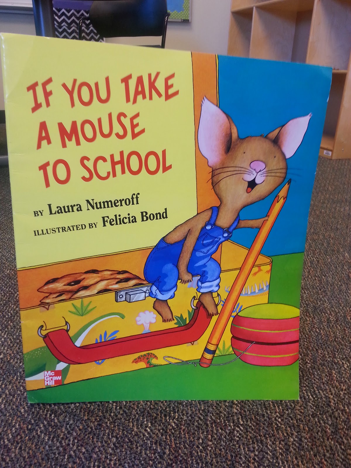 For the first week, I used the book, “If You Take A Mouse To School” by Laura Numeroff to base my therapy sessions around.