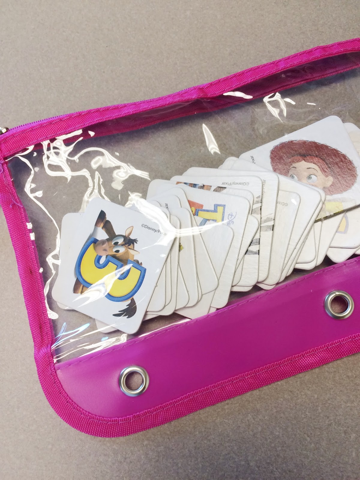 4.  Keeping Memory games/puzzle pieces in pencil cases from the $1 store