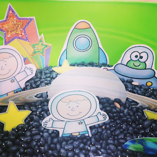 Towards the end of the school year, we did an Outer Space theme in some of the preschool classrooms. With it being the end of the school year AND testing week for the classroom teachers, it was a crazy week so I opted for activities that kept it simple!
