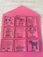 Materials needed: red construction paper for the barn, and red copy/construction paper for the pictures