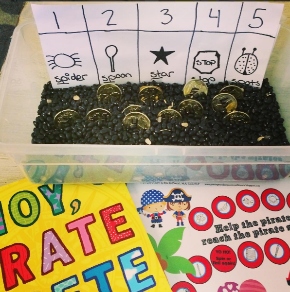 2. To go along with the book, I created a pirate-themed articulation sensory bin.