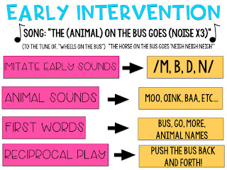 I changed jobs/settings this year, and part of my caseload is early intervention.  I have several toddlers with Down Syndrome on my caseload who are working on imitating early sounds, babbling reduplicated syllables, saying first words, and imitating environmental/animal sounds.  They LOVE singing, and love pushing the bus back and forth! I can hit lots of their early speech and language goals with animals and their sounds.